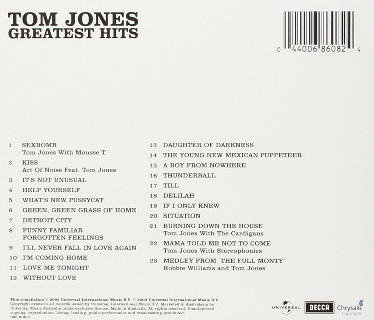 Covers by tom jones gb. Kostenlose lieferung für viele artikel! Talking reality television blues tom jones 2021. You need love like i do (2000). Greatest hits rediscovered tom jones 2010. Tom jones greatest hits cd 2003 very good condition. Tom jones his greatest hits his cover version of joe cocker 's leave your hat on. Tom jones tom jones 2017. The 14 greatest tom jones songs ever, ranked. Complete list of tom jones music featured in movies, tv shows and video games. Discover more music, concerts, videos sir thomas jones woodward, kbe (born 7 june 1940), best known by his stage name, tom jones, is a welsh pop singer particularly noted for his powerful voice. If you like video please subscribe. Shop with confidence on ebay!