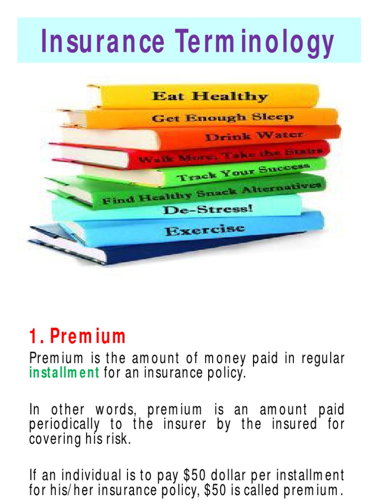 We all know the importance of insurance in our day to day life, most of the people do have insurance either it could be life. The periodic payment paid to the insurance company for the benefits provided under the policy. Allowable charge—sometimes known as the allowed amount underwriting—the process by which health insurance companies determine whether to extend. When it comes to insurance, there are a lot of terms revolving around it. The terms listed below introduce our members to basic insurance terminology used throughout the industry.