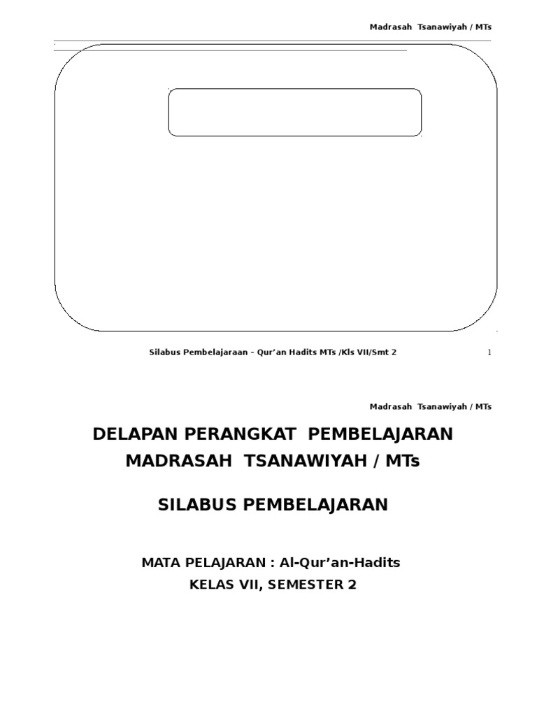 Silabus Al-Quran Hadist Kelas 7 Semester Genap - Download Silabus Kelas 7 8 9 K13 Revisi 2017 Semua Mata Pelajaran. Pilihlah jawaban yang paling tepat dengan memberi tanda silang (x)! 2 silabus qh vii 1 2 k13. Madrasah tsanawiyah / mts n q.s. Berikut links download silabus dan rpp qur'an hadis mts pada kurikulum 2013 Materi al qur an hadits kelas 7 semester 1 2 kurikulum 2013 buku alquran hadis mts 7 kumpulan soal ukk qur quran hadits kelas 7 semester 2.
